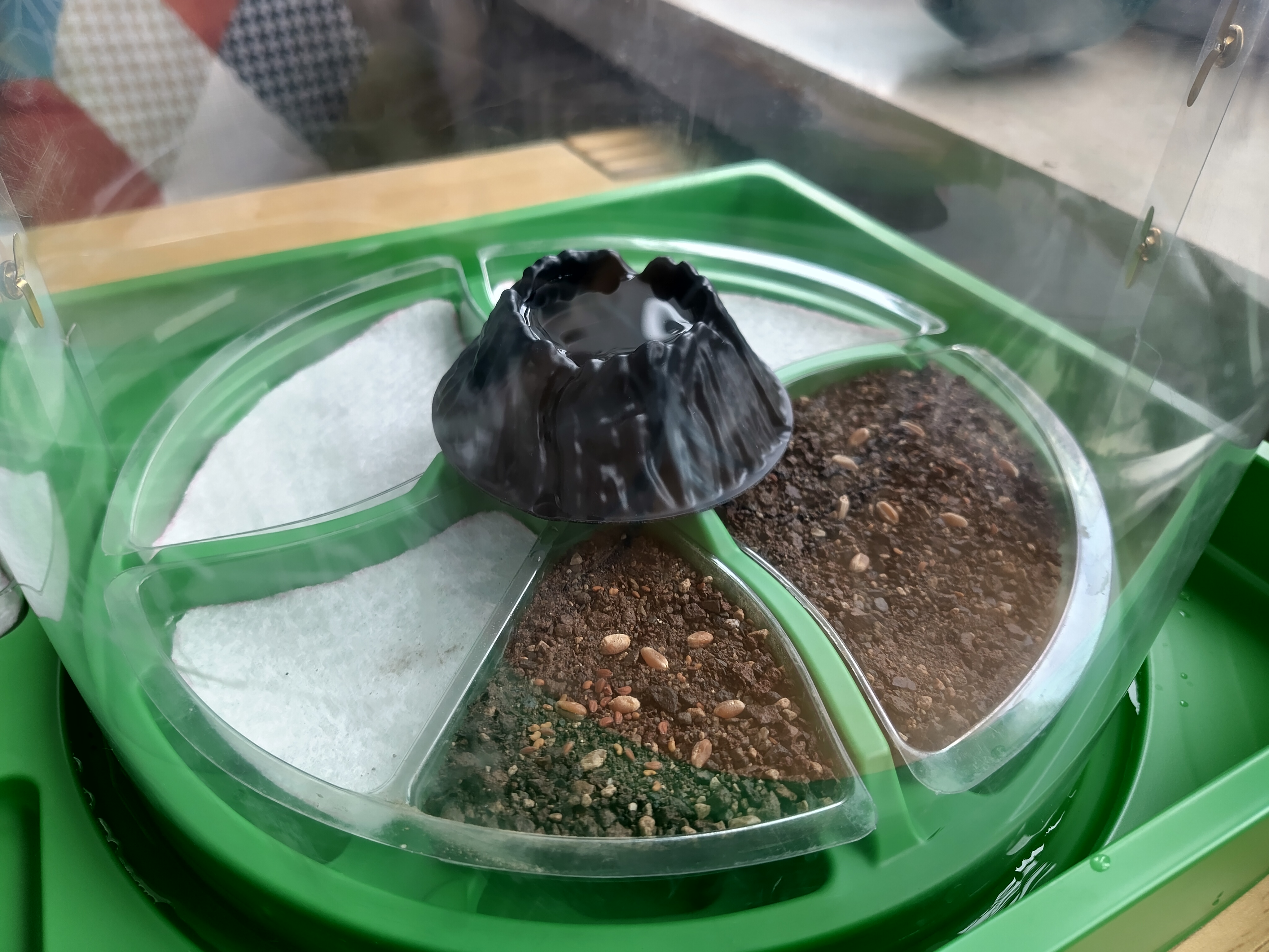 Zunächst wurde das künstliche Ökosystem nach Anleitung zusammengebaut und bepflanzt. Die Bepflanzung musste jedoch wiederholt werden, da die mitgelieferten Pflanzensamen aufgrund der langen Lagerzeit nur ganz vereinzelt keimten und daher durch "frische" Sämereien ersetzt werden mussten.