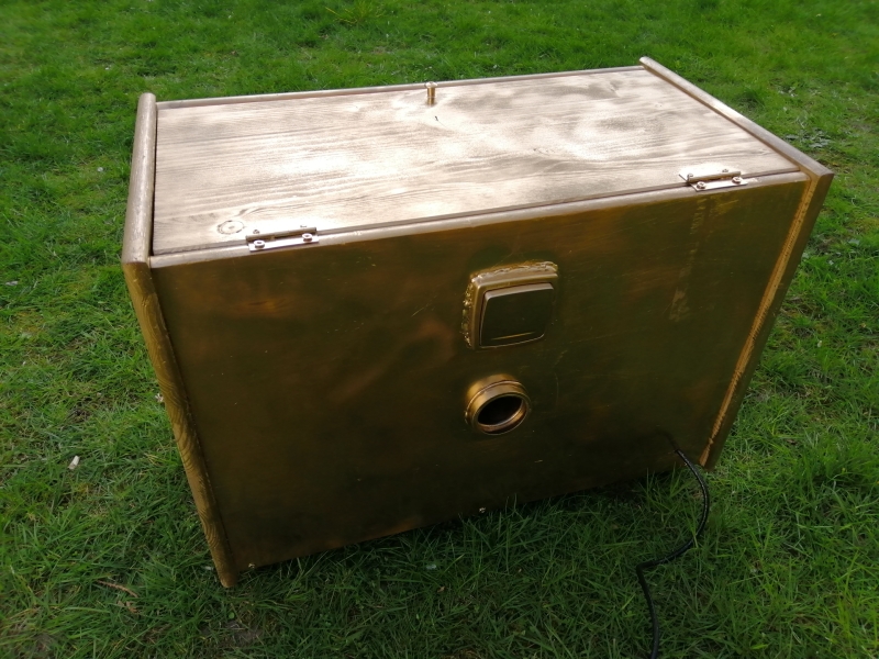 Zum Schluss wurde der Deckel mittels Scharnieren an die BoomBox geschraubt und mit einem Knopf versehen, um die Box leicht öffnen zu können.