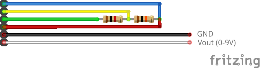 Das fertige Adapterkabel wurde auf der einen Seite als "AKTOR" beschriftet, während auf der anderen Seite die Ausgangsspannung angegeben wurde (0 bis 9 Volt Gleichstrom):