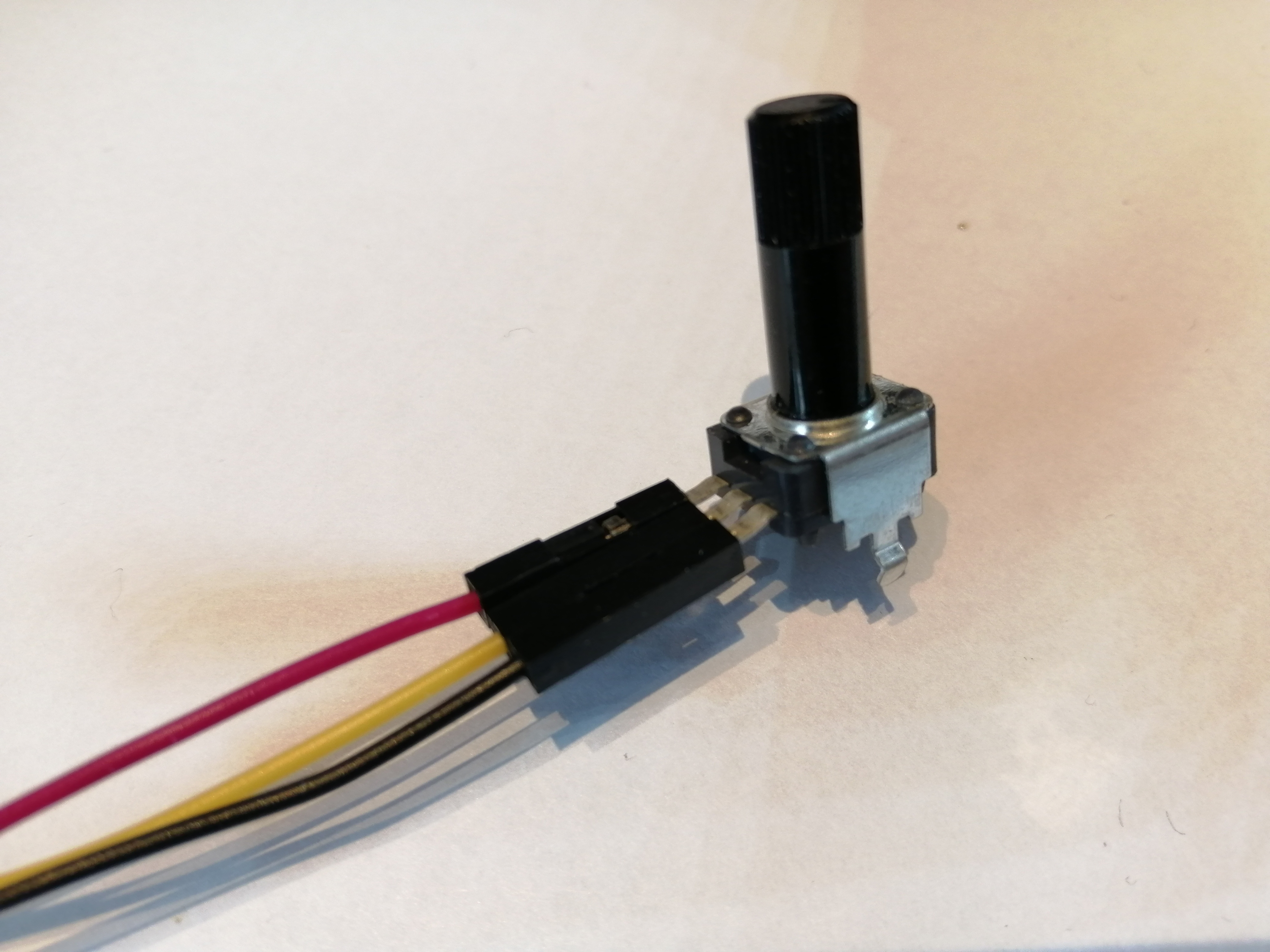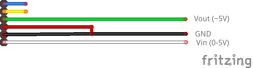 Das fertige Adapterkabel wurde auf der einen Seite als "SENSOR" beschriftet, während auf der anderen Seite die Farbe des Vin-Kabels angegeben wurde (hier: gelb), um eine Verwechslung mit dem Vout-Kabel (immer rot) zu vermeiden: