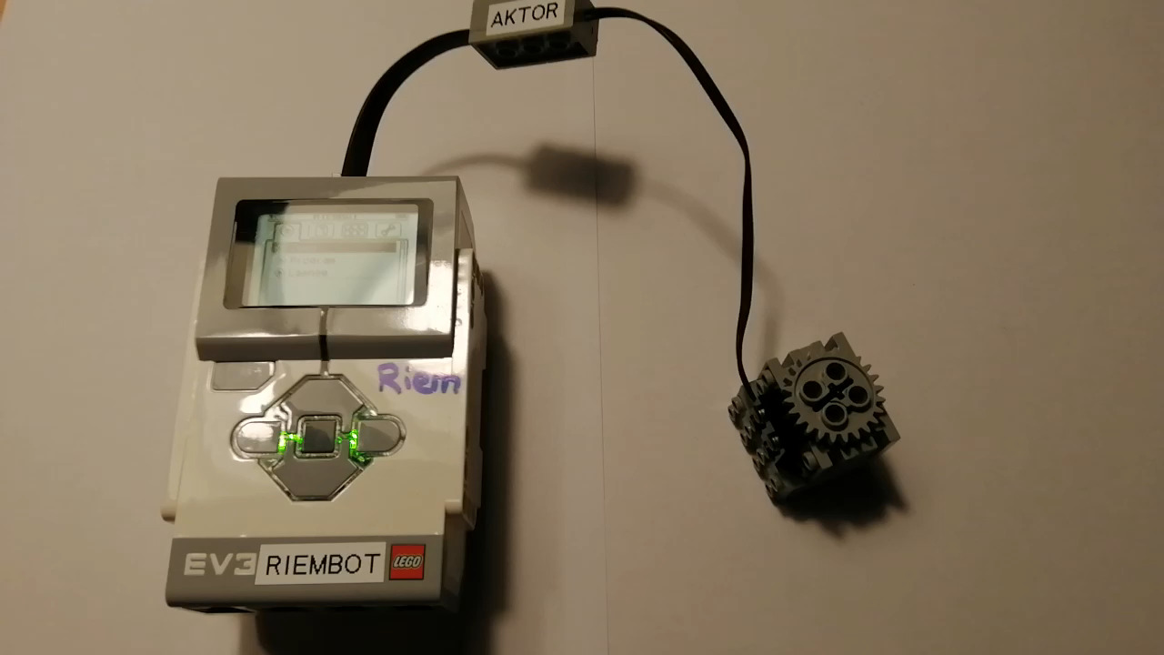 Auf dem folgenden Video kann man gut sehen, dass das DEMO-Programm der EV3-Einheit den angeschlossenen LEGO® Technik-Motor problemlos erkennt und in beide Richtungen ansteuern kann (Rechts-/Linkslauf):