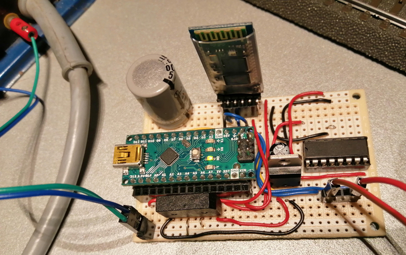 Wer sich traut, die Märklin-Lokomotiven auf "Gleichstrombetrieb" umzurüsten, dem gelingt es sehr einfach, seine (analoge) Märklin-Modelleisenbahnen mit Hilfe eines Arduino Mikrocontrollers nicht nur teilweise zu "digitalisieren", sondern auch per Smartphone-Button zu steuern: Dies betrifft sowohl das Anfahren und Abbremsen als auch das Schalten von Weichen und Signalen oder auch die Beleuchtung von Autos, Häusern oder Bahnübergängen - und das mit vergleichsweise geringem finanziellen Aufwand: Die Materialkosten für die hier dargestellte Schaltung betragen durch die Verwendung des original Märklin-Trafos ca. 30 EUR - was aber immer noch deutlich günstiger ist als eine originale digitale Nachrüstung einer Märklin-Modelleisenbahn.