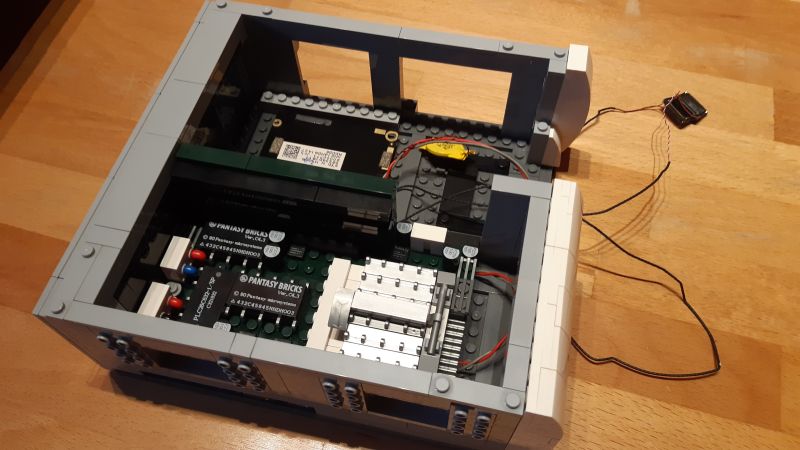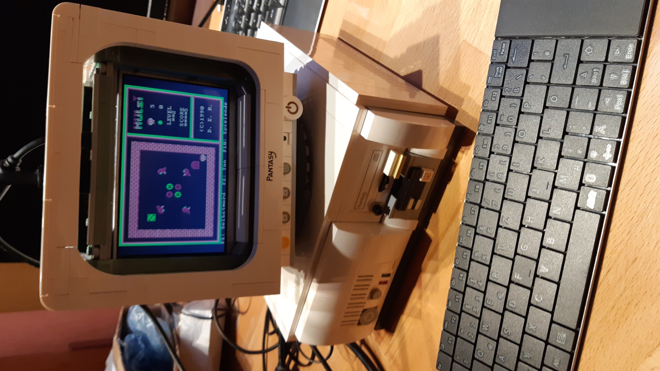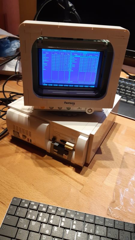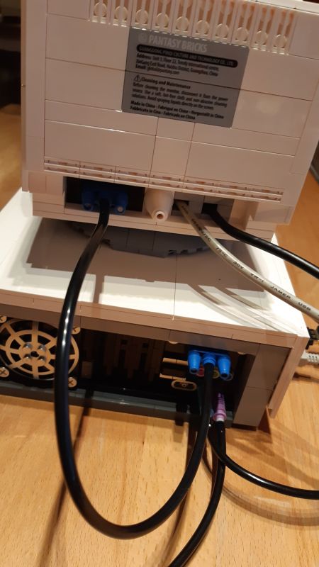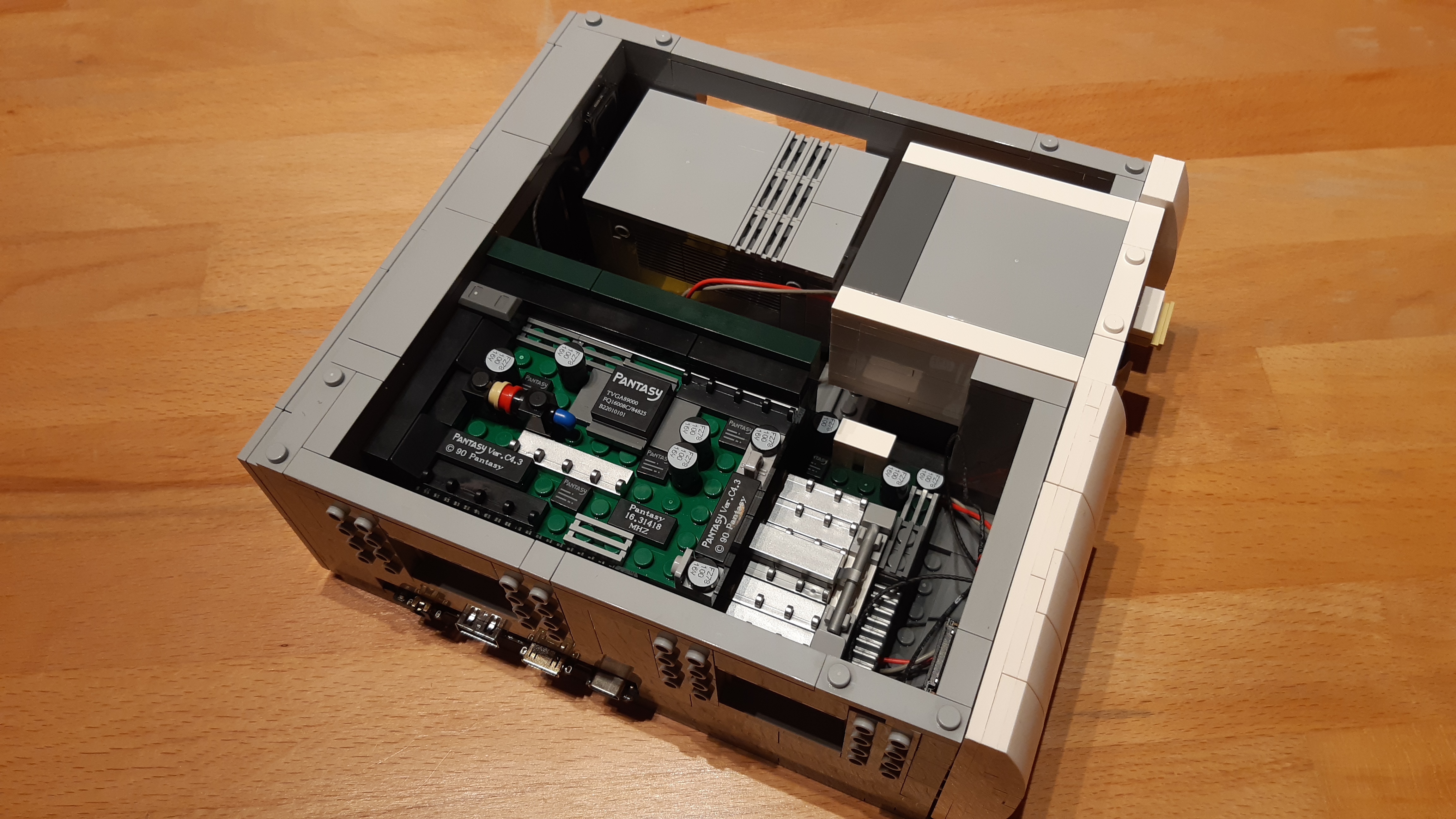 Die Firma Pantasy bietet einen Retro-PC Klemmbausteinbausatz mit 1634 Bauteilen an, der im Grunde eine Miniaturversion eines echten PCs der 90er-Jahre darstellt, inkl. herausnehmbaren PC-Komponenten (Mainboard, Grafikkarte, Netzteil) sowie interaktiv nutzbares Disketten-/CD-Laufwerk und Monitor mit teils interaktivem Bildschirm. Meine Idee war, zusätzlich ein "echtes", technisch aktuelles PC-Innenleben in den PC sowie ein Mini-TFT-Display in den Monitor einzubauen, um z.B. mittels DOSBox alte DOS-Spiele auf diesem Retro-PC spielen zu können. Die Challenge war darüber hinaus, dass nur die im Klemmbausteinset enthaltenen Klemmbausteine verwendet werden durften, ohne diese jedoch zu modifizieren.