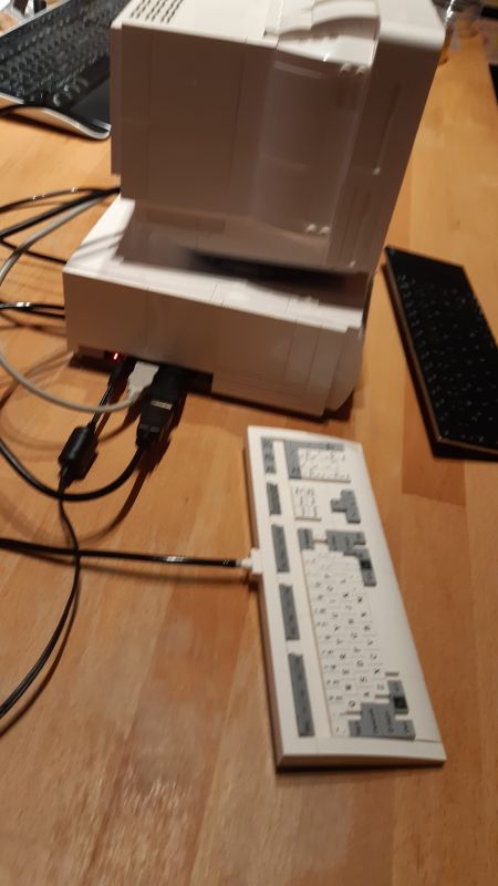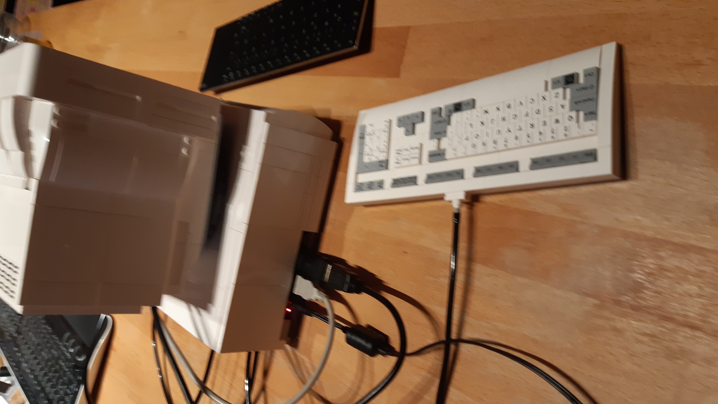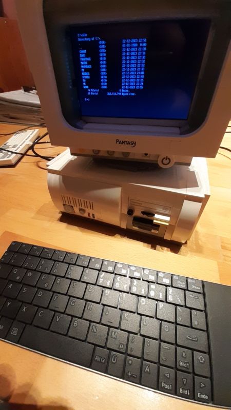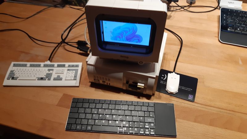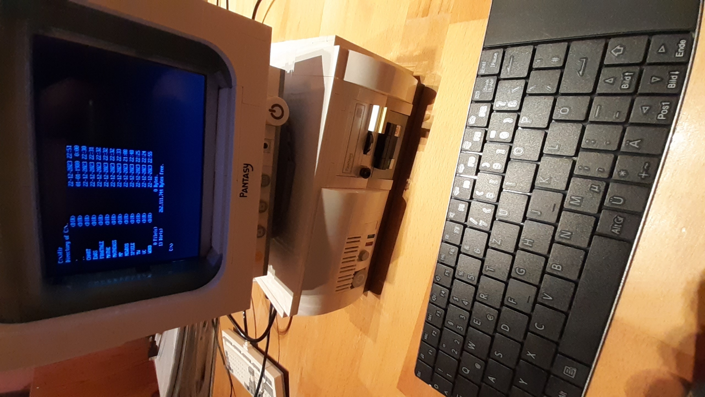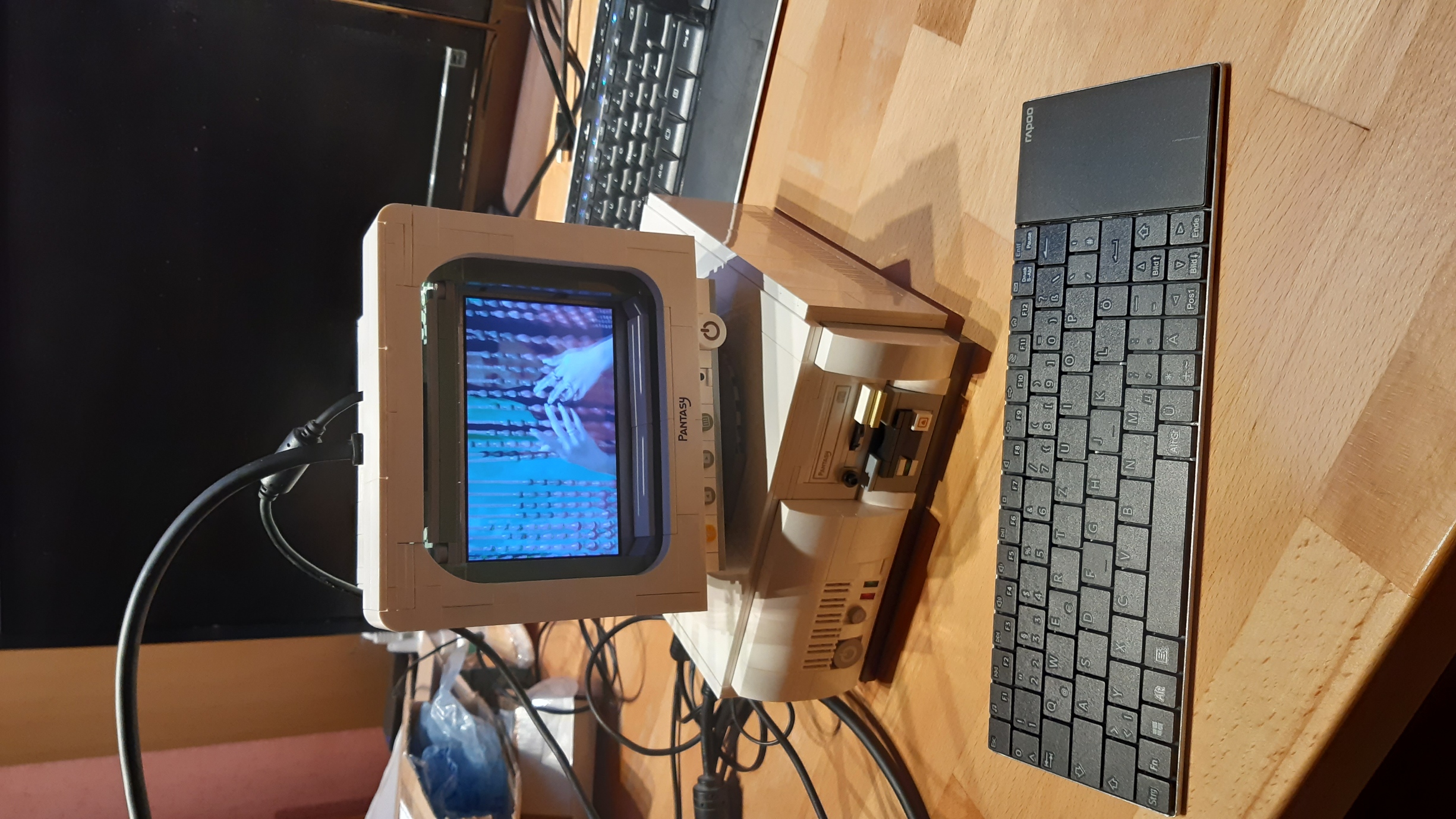 Die Firma Pantasy bietet einen Retro-PC Klemmbausteinbausatz mit 1634 Bauteilen an, der im Grunde eine Miniaturversion eines echten PCs der 90er-Jahre darstellt, inkl. herausnehmbaren PC-Komponenten (Mainboard, Grafikkarte, Netzteil) sowie interaktiv nutzbares Disketten-/CD-Laufwerk und Monitor mit teils interaktivem Bildschirm. Meine Idee war, zusätzlich ein "echtes", technisch aktuelles PC-Innenleben in den PC sowie ein Mini-TFT-Display in den Monitor einzubauen, um z.B. mittels DOSBox alte DOS-Spiele auf diesem Retro-PC spielen zu können. Die Challenge war darüber hinaus, dass nur die im Klemmbausteinset enthaltenen Klemmbausteine verwendet werden durften, ohne diese jedoch zu modifizieren.