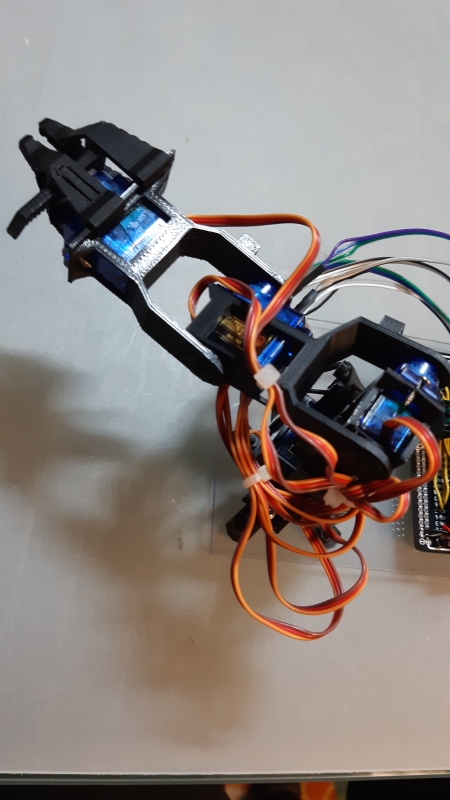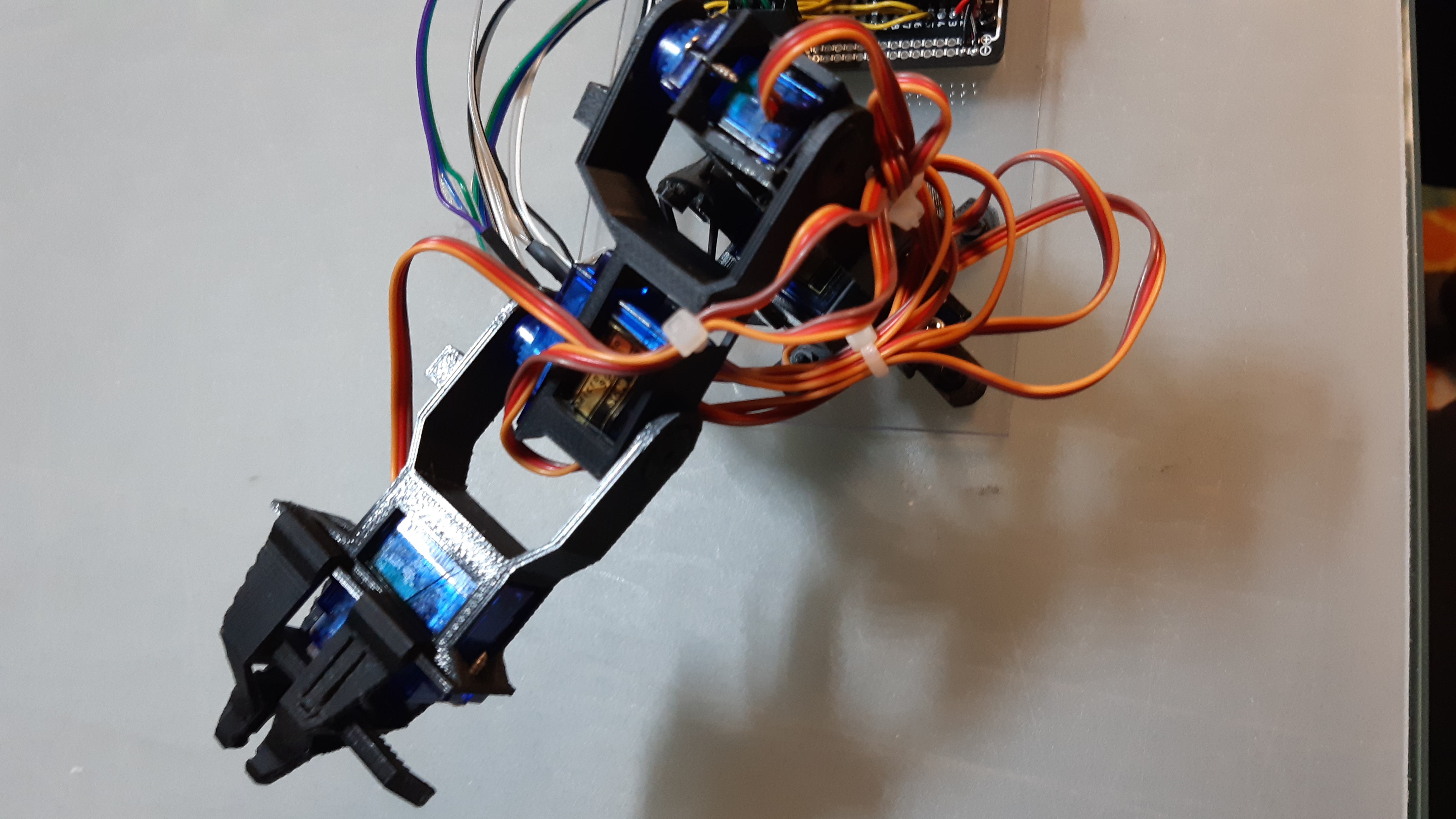 Solange keine größeren Modelle zur Verfügung stehen, eignen sich 3D-gedruckte Roboterarme gut für ein erstes Expermientieren mit Servomotoren und der Simulation von autonomen Steuerungen. Diese Modelle sollten fest auf eine stabile Unterlage montiert werden, um eine Standsicherheit (auch bei "ruckartigen" Bewegungen) zu gewährleisten.