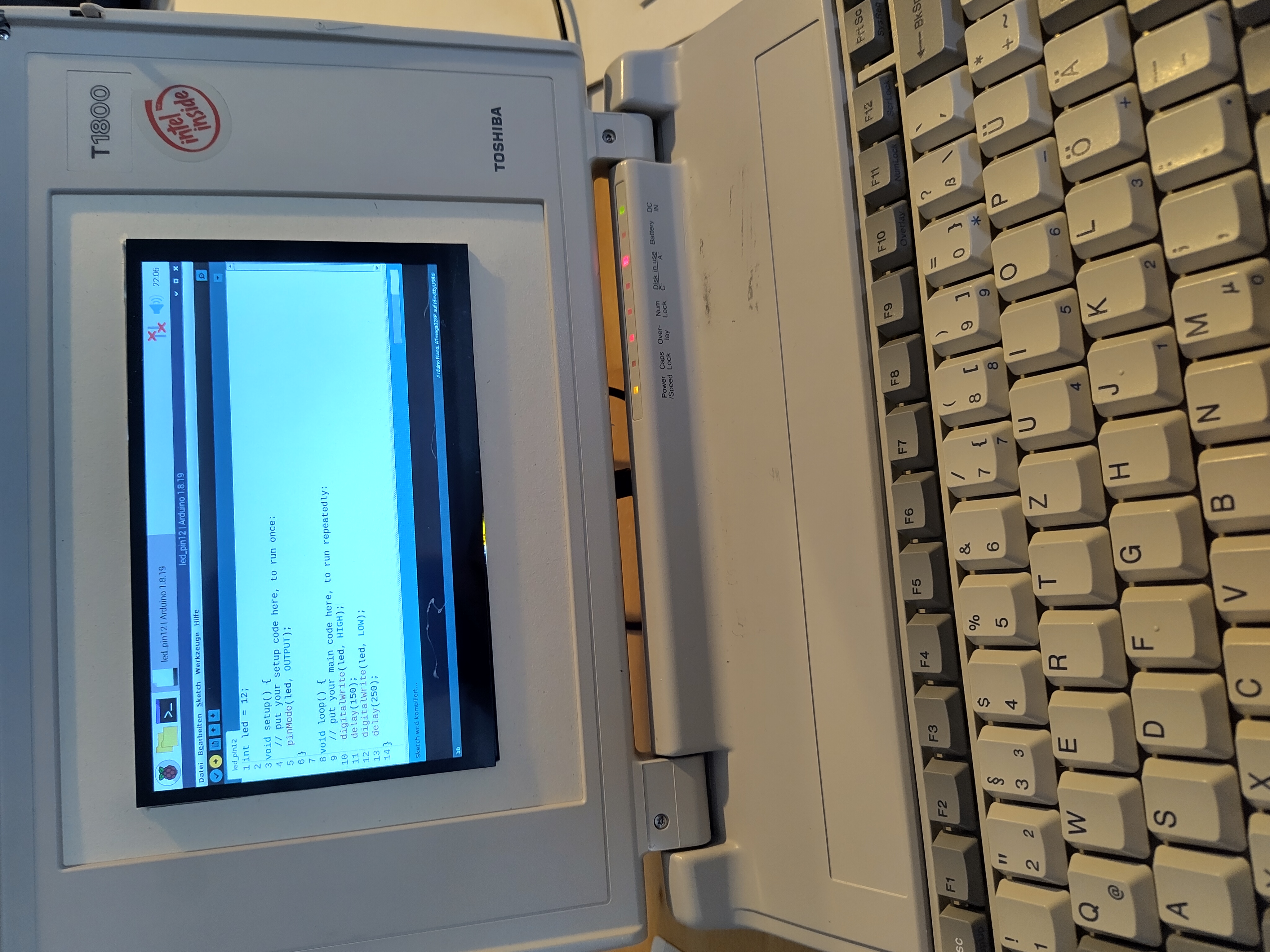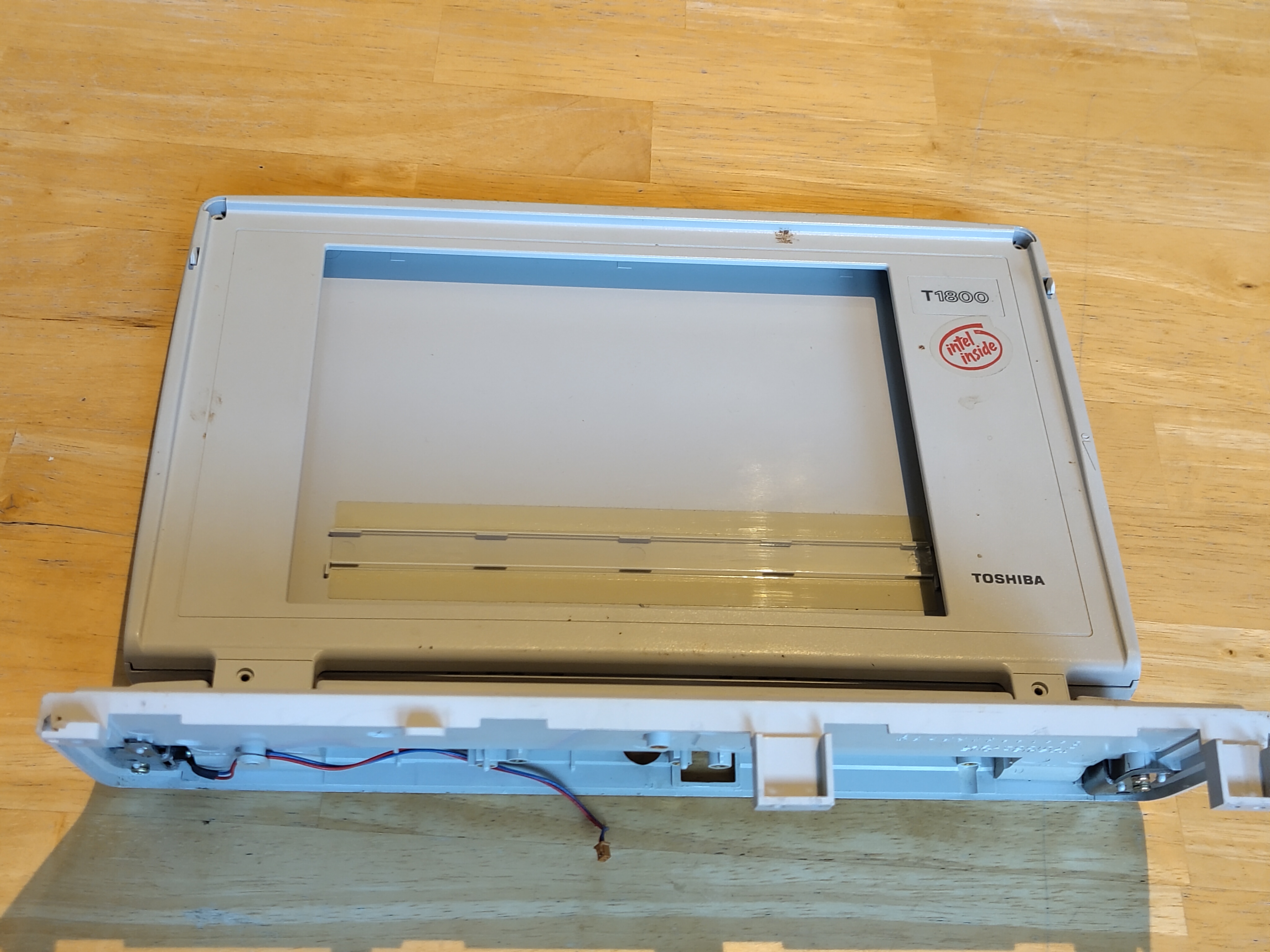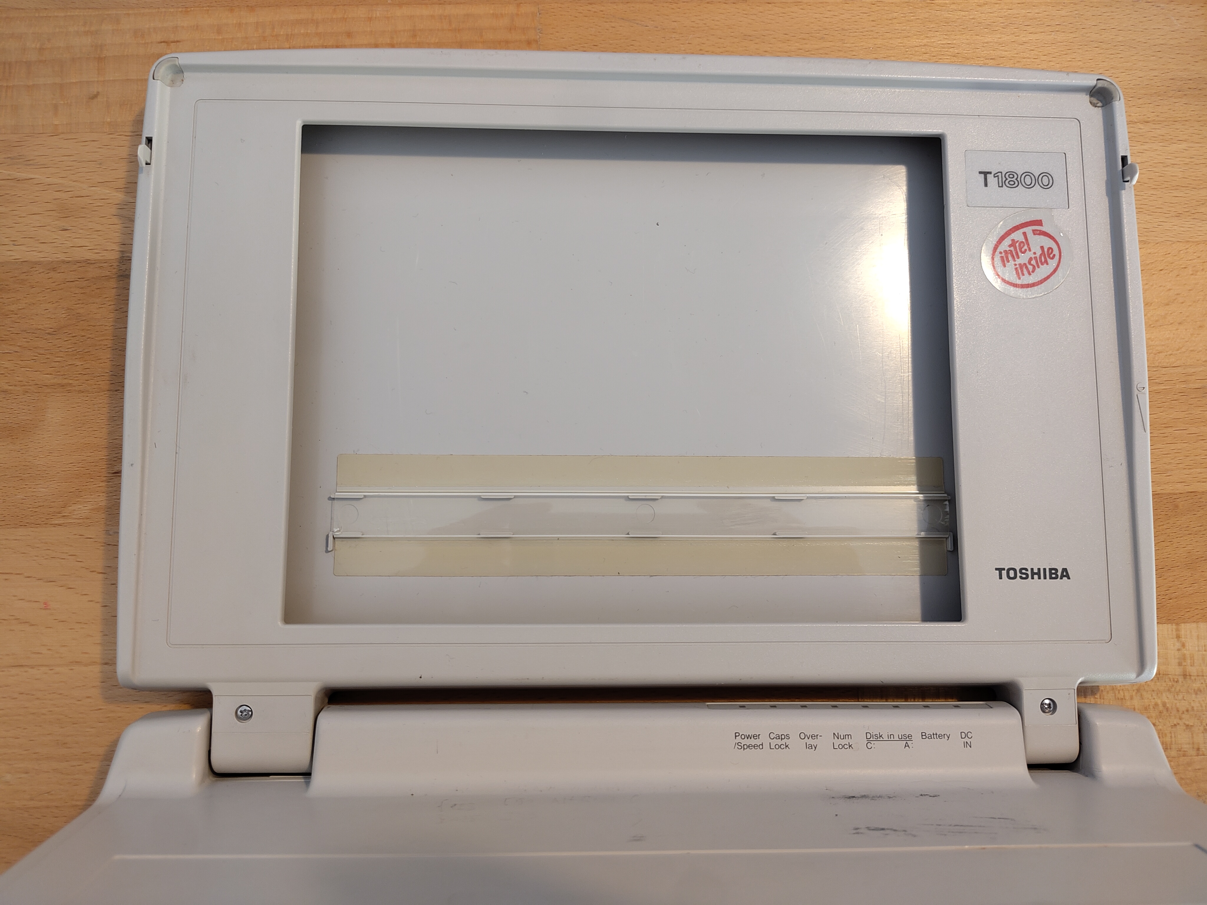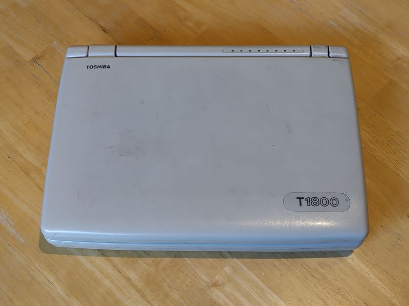 Die Wahl fiel auf ein Toshiba T1800 Laptop aus dem Jahr 1992 ohne Netzteil, welches ursprünglich mit einem 80386SX-20 Prozessor und 2 MB RAM, einem Diskettenlaufwerk, einer 60 MB Festplatte und einem 9.5" Graustufendispplay ausgestattet war. Schnell stellte sich heraus, dass das Mainboard und die Tastatur zwar noch funktionierten, alles andere jedoch mehr oder weniger defekt und damit unbrauchbar war. Ein Anschluss des Laptops an einen VGA-kompatiblen Monitor offenbarte lediglich die BIOS-Einstellungen; da sowohl die alte IDE-Festplatte als auch das Diskettenlaufwerk nicht mehr funktionierten, war das Innenleben ohne entsprechende Ersatzteile damit nicht mehr in seiner originalen Funktionsweise nutzbar.