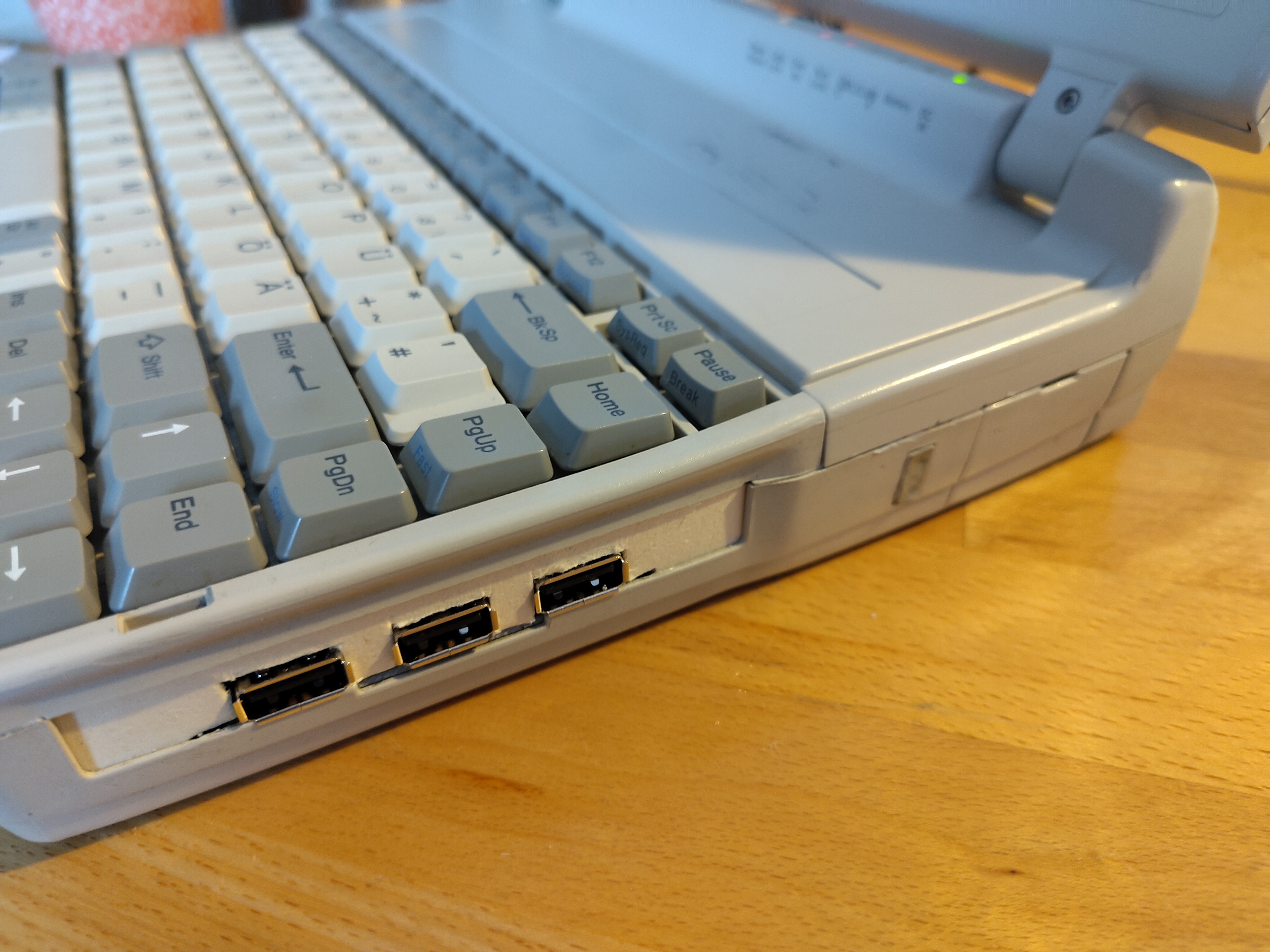 Für unter 100 EUR Gesamtkosten ist hier ein defekter, über 30 Jahre alter Laptop wieder zum Leben erwacht - und zwar mit deutlich mehr Power: 700 MHz statt 20 MHz Prozessorgeschwindigkeit, 512 MB statt 4 MB RAM, 64 GB statt 60 MB Festplattenkapazität sowie ein touchfähiges Farbdisplay mit 1024x600 Pixeln statt eines Graustufendisplays mit 640x480 Pixeln. Mit der Software "DOSBox" können auch alte DOS-Spiele wie "Space" oder "Sokoban" wieder zum Leben erweckt werden und runden das Retro-Erlebnis dieses Laptops ab: